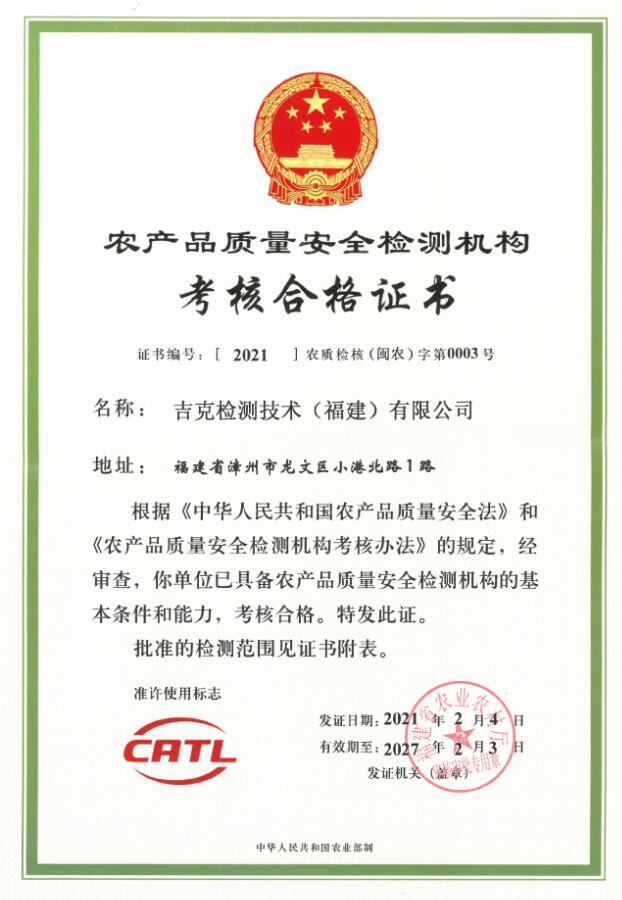 吉克檢測技術(福建)有限公司,位于福建省漳州市龍文區小港北路1號,于2019年8月注冊成立,是一家獨立的第三方檢測公司。公司已經通過檢驗檢測機構計量認證(CMA)、農產品質量安全檢測機構資質認證(CATL),獲得中國合格評定國家認可委員會(CNAS)認可。公司本著“嚴謹、規(guī)范、高效、協作”的原則和對客戶及社會高度負責的精神,充分利用本公司優(yōu)質的檢測環(huán)境、先進的檢測設備和專業(yè)的技術人員,第一時間為客戶提供科學、公正、準確的檢驗檢測報告。 公司實驗室面積1100多平方米,儀器設備兩百多臺(套),固定資產一千多萬元,在職員工31人,技術人員中的中高級職稱及同等能力人數占60%以上。我們的服...